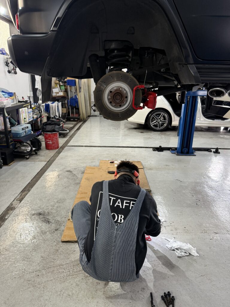 車検整備で、ブレーキ鳴きの改善作業