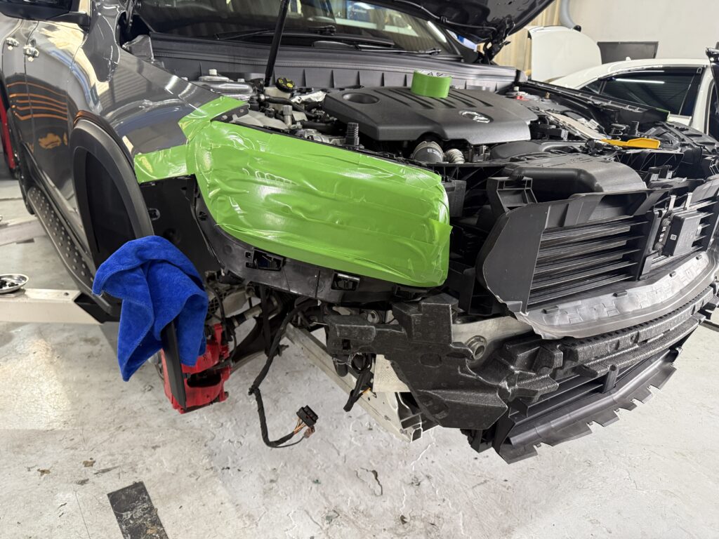 そして、養生してバンパーをおろしていきます。