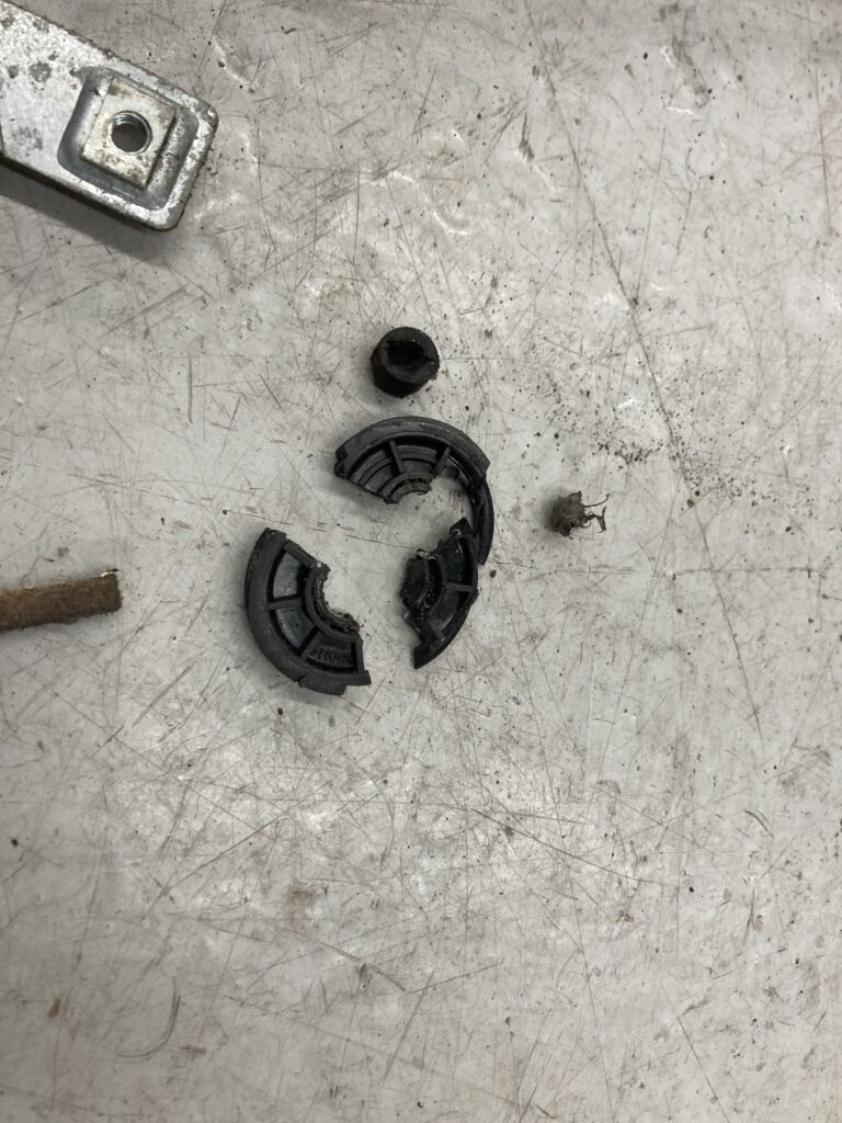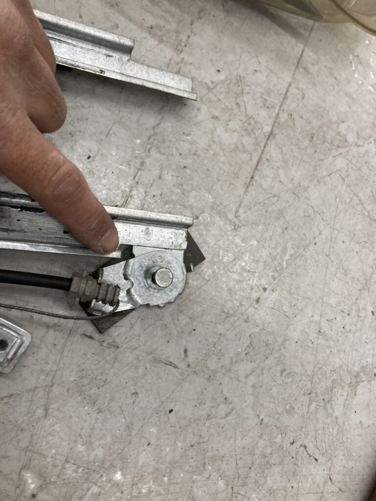 原因は、パワーウィンドレギュレーター(モーター付)の劣化でした。この黒い樹脂がバラバラに…