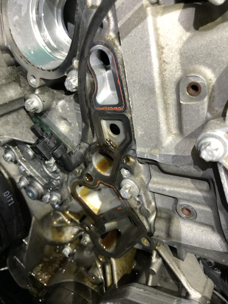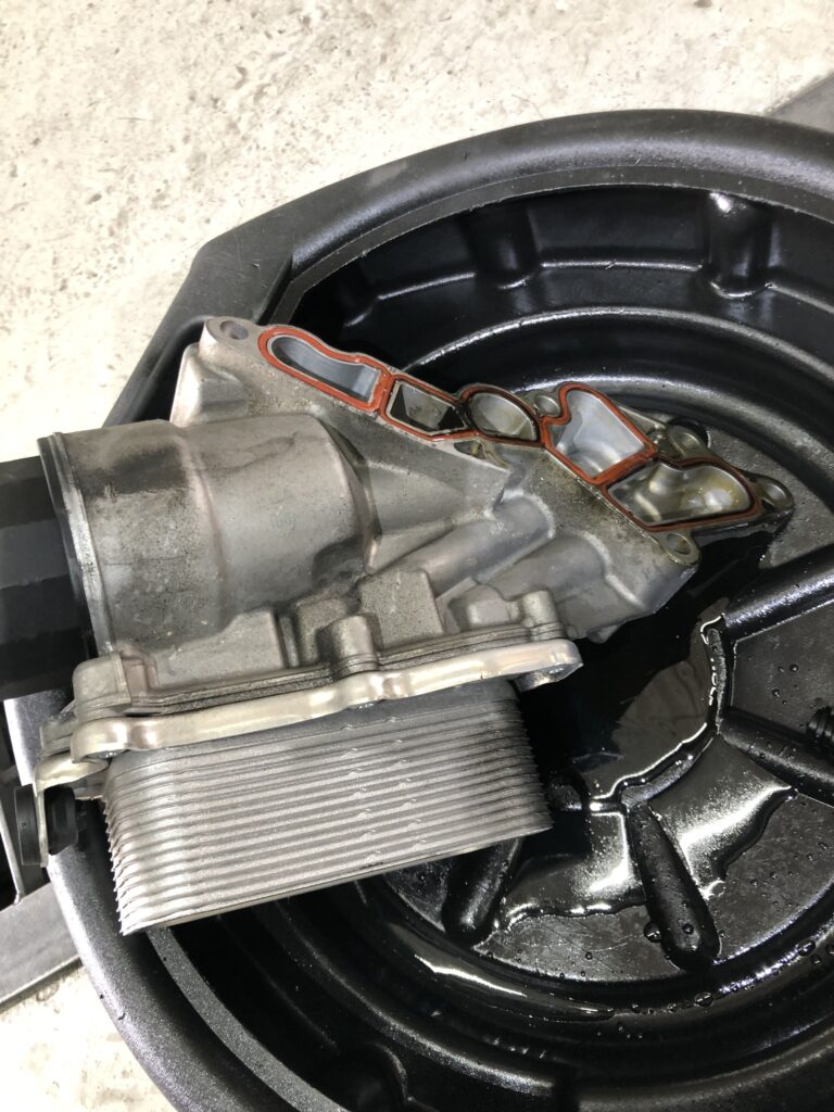 エンジンオイル漏れにより、オイルフィルターハウジングのパッキン交換