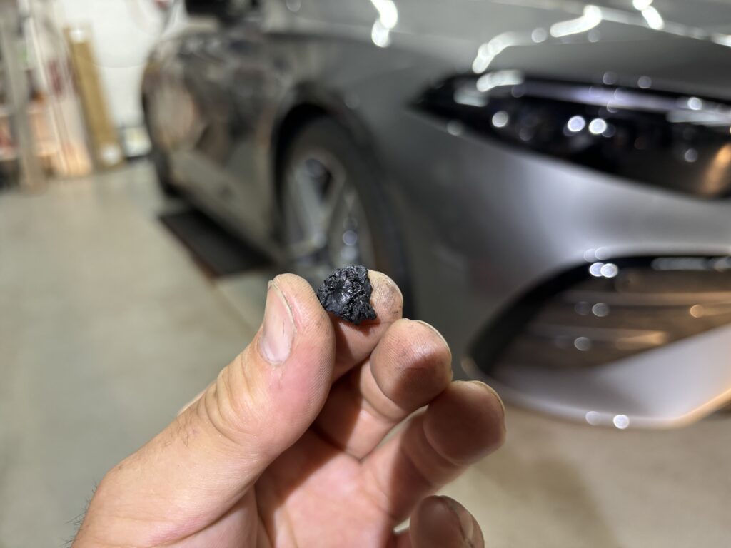 インジェクターホールを見てみると、ススだらけで何も見えません😕