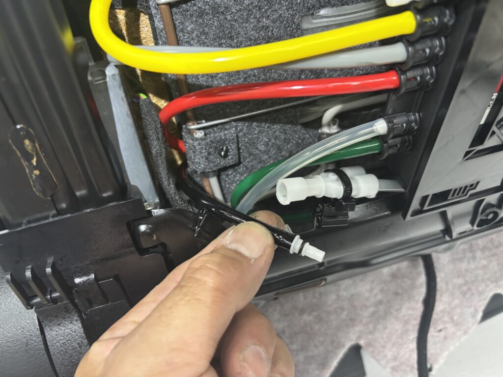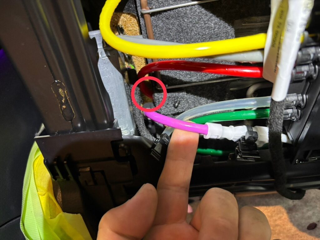 エア漏れしているホースを外したいので、シートを分解していきます!